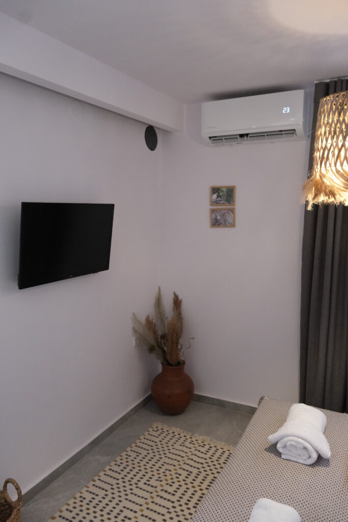 The bedroom is equiped with airconditioning, upper quality matress with memory form, two qualities of pillow. Perfect for remote workers and digital nomads, the apartment features a quiet, dedicated workspace with a large desk, high-speed Wi-Fi, and a wired Ethernet connection for a stable and reliable internet experience, and excellent natural light to ensure a comfortable and productive stay.